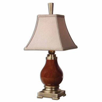 Designed by Carolyn Kinder, the Daviel Accent Lamp Set, by Uttermost, has a cinnamon red porcelain body with coffee bronze metal details and a crushed, silken, golden bronze, square bell shade; available on FurnitureCrate.com..../ Uttermost Daviel Accent Lamp Set / Daybed Sets